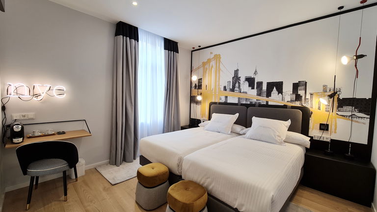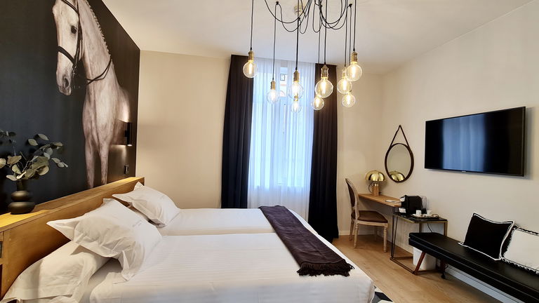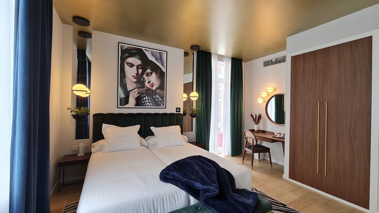 A comfortable and charming room, perfect for resting after exploring Santander. Each Classic Double has a unique design and all the details to make you feel at home: full bathroom, air conditioning, free Wi-Fi, coffee maker, mini fridge, and safe. Ideal for city getaways as a couple or for business trips.